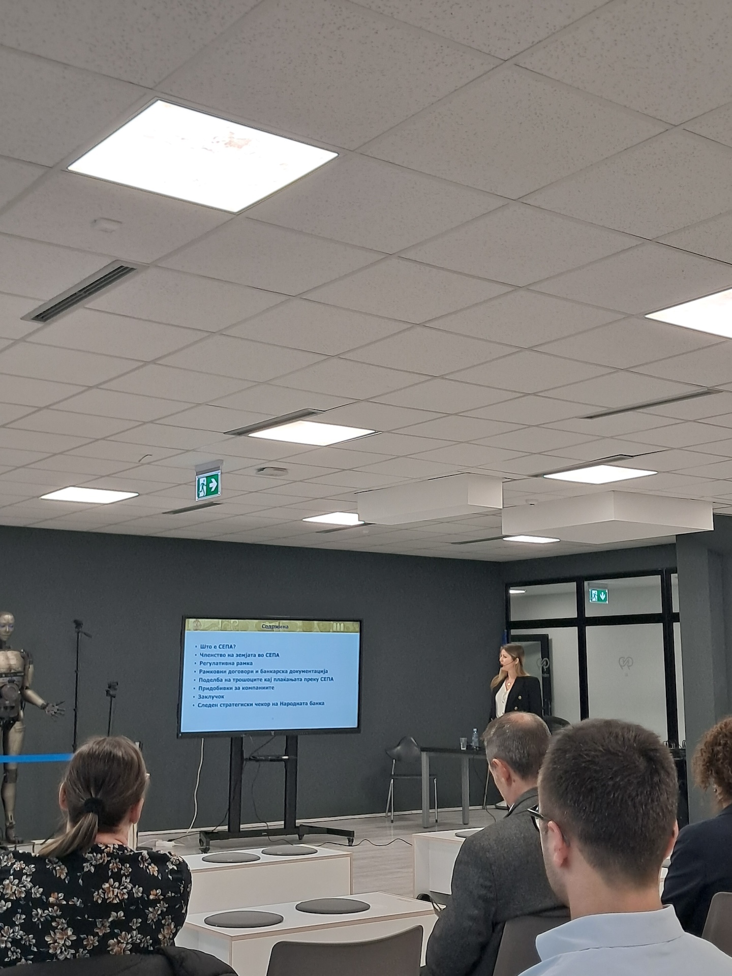 Настанот беше организиран во соработка со Народната банка на Република Северна Македонија, при што експерти ги презентираа клучните аспекти од процесот на пристапување кон СЕПА и неговото практично значење за компаниите.